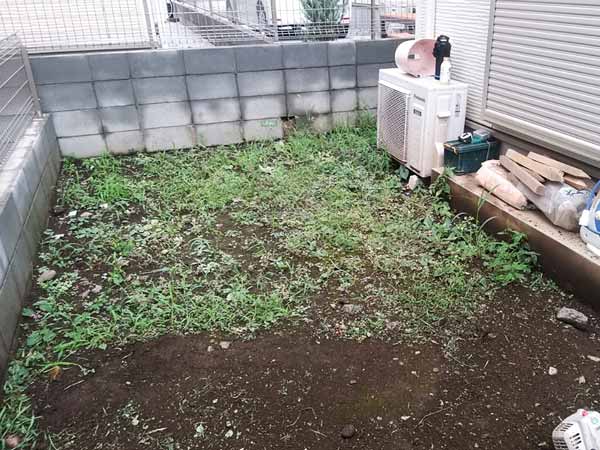 内容:除草・不要残置物の撤去処理・整地・防草シート敷き・平板敷き・砂利敷き