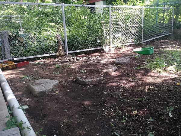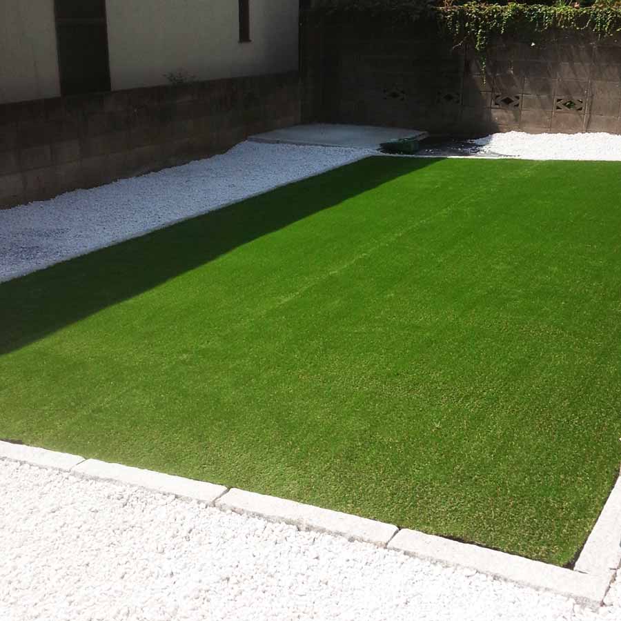 内容:整地・縁石並べ・防草シート敷き・人工芝張り・周囲の砂利敷き