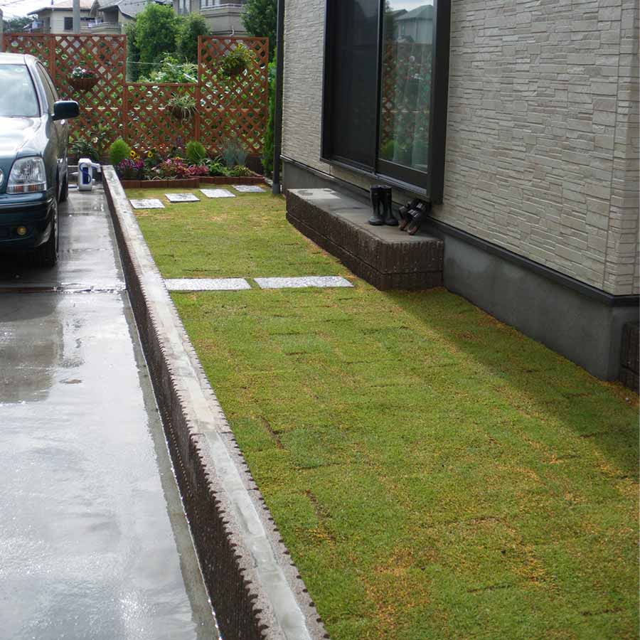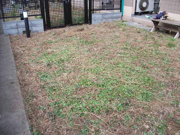 内容:既存芝剥ぎ取り・下地整地・フェンスの隙間埋め・新規芝張り
